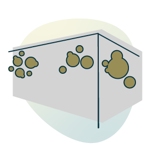 Some mildew is typical in hot rooms like bathrooms. However it’s not usual to find sizable amounts growing on a non-shower wall, the ceiling or on baseboards, particularly if these spaces feel soft to the touch.